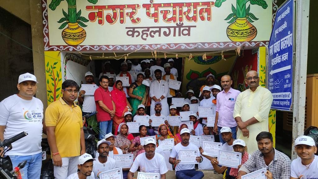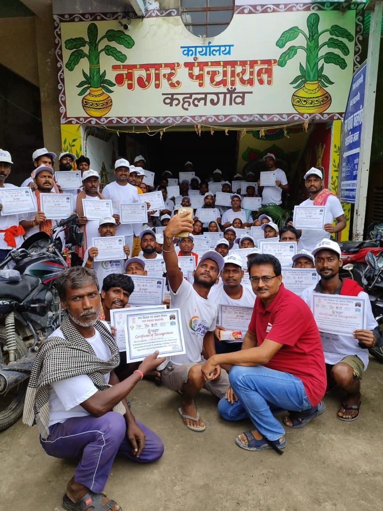 आज नगर पंचायत के अध्यक्ष श्री संजीव कुमार की अध्यक्षता में स्वच्छता पखवाड़े अभियान के तहत लगाए गए कर्मियों एवं कर्मचारी को गांधी जयंती और लाल बहादुर शास्त्री के जयंती पर ढाई सौ सफाई कर्मी एवं कर्मचारियों को स्वच्छता प्रमाण पत्र समर्पित किया गया। इस अवसर पर नगर पंचायत के कार्यपालक पदाधिकारी सोनी कुमारी, उपाध्यक्ष रेखा कुमारी, वार्ड सदस्य रामकुमार पाठक, श्वेता गुप्ता, कुमारी स्नेहा, , योगेन्द्र सहनी, अक्षय कुमार, सोनम कुमारी, प्रतिनिधि नीरज कुमार, मनोज कुमार चौधरी, प्रवीण कुमार राणा, संतोष कुमार गुप्ता सभी ने सफाई कर्मी एवं कर्मचारियों को प्रमाण पत्र प्रदान किये। इसी मौके पर नगर पंचायत के अध्यक्ष श्री संजीव कुमार ने नगर पंचायत मे लगे सफाई महिला कर्मी को अपने तरफ से सौगात के रूप मे उन्हे साड़ी प्रदान किये। बतातें चलें कि नगर पंचायत कहलगांव में स्वच्छता पखवाड़ा के अंतर्गत दिनांक 16.09.2023 से 02.10.2023 तक नगर पंचायत के हर मोहल्ले के हर गली मे सफाई अभिययान चलाया गया !