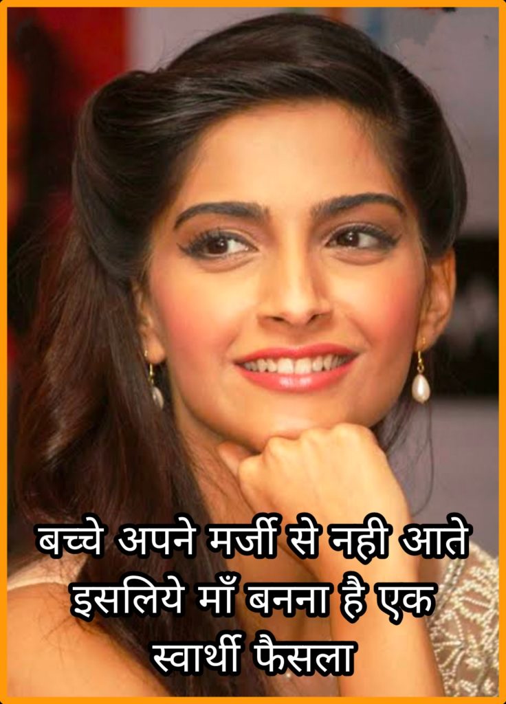 हिन्दी सिनेमा जगत के मशहूर और लोकप्रिय अभिनेता अनिल कपूर की बेटी और आनन्द आहूजा की पत्नी सोनम कपूर जो कि खुद एक सेलिब्रेटी हैं, उन्होंने अपने पहले बच्चे को जन्म बीते शनिवार को दिया ! मातृत्व के मामले में उनका सोच औरों से थोड़ा हट के है हिन्दी सिनेमा की मशहूर अभिनेत्री Sonam kapur का मानना है कि ‘मातृत्व ने प्राथमिकताओं में पूरी तरह फेरबदल किया है ! उन्होंने एक इंटरव्यू में माँ बनने के निर्णय को स्वार्थी करार देते हुए कहा- “प्राथमिकताएं बदलती हैं जिससे हमें लगता है कि बच्चा मेरा हो जाएगा. जबकि सत्य यह है कि बच्चा दुनिया मे आने के लिये खुद से नही निर्णय लिया बल्कि हम खुद उसे अपने मातृत्व सुख के लिये दुनिया मे लाते हैं ! इसलिये उसे दुनिया मे लाना हर मां का स्वार्थी फैसला होता है.”