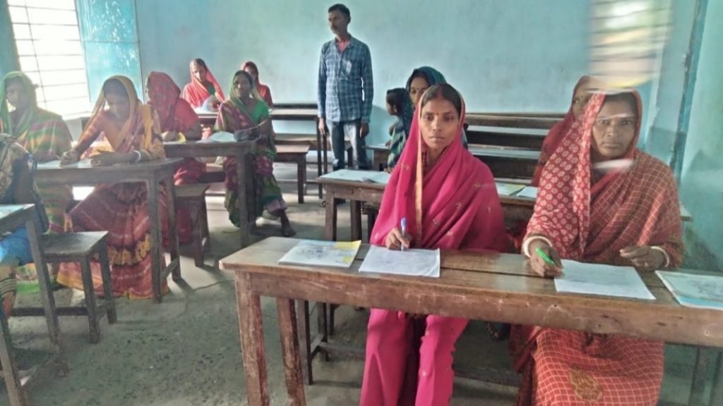 पीरपैंती प्रखण्ड के हुजुरनगर मध्य विद्यालय में नव साक्षर महिलाओं की बुनयादी साक्षरता परीक्षा सम्पन्न हुआ